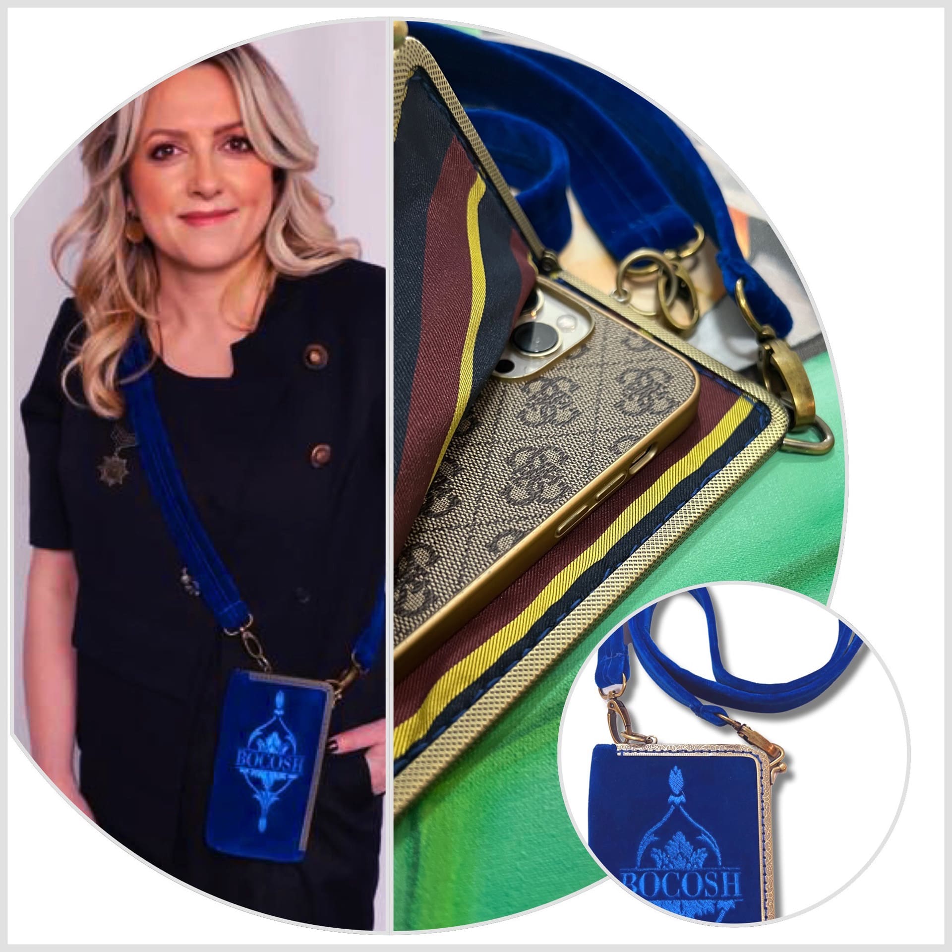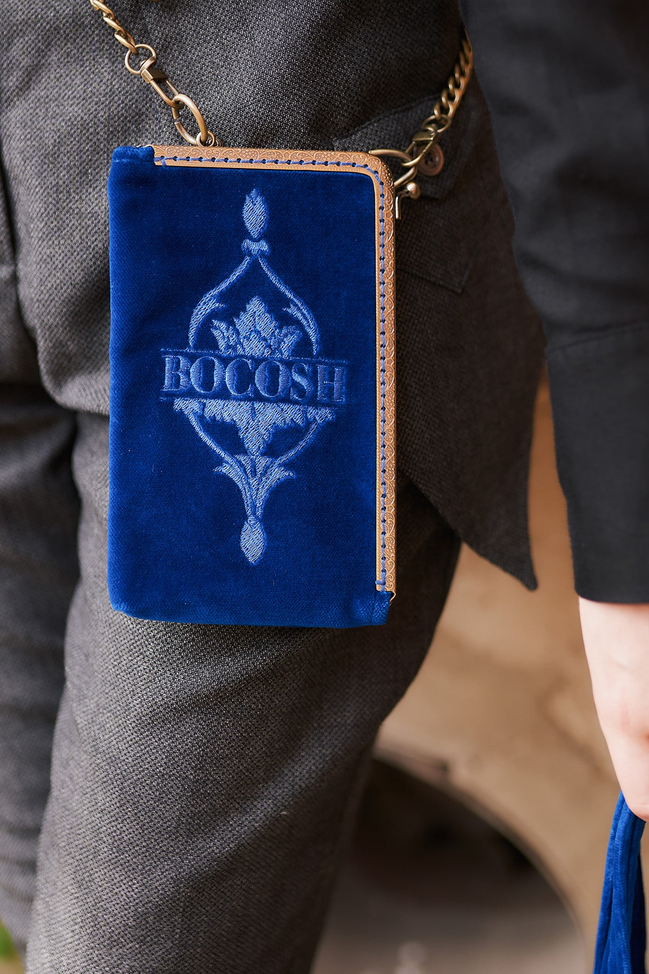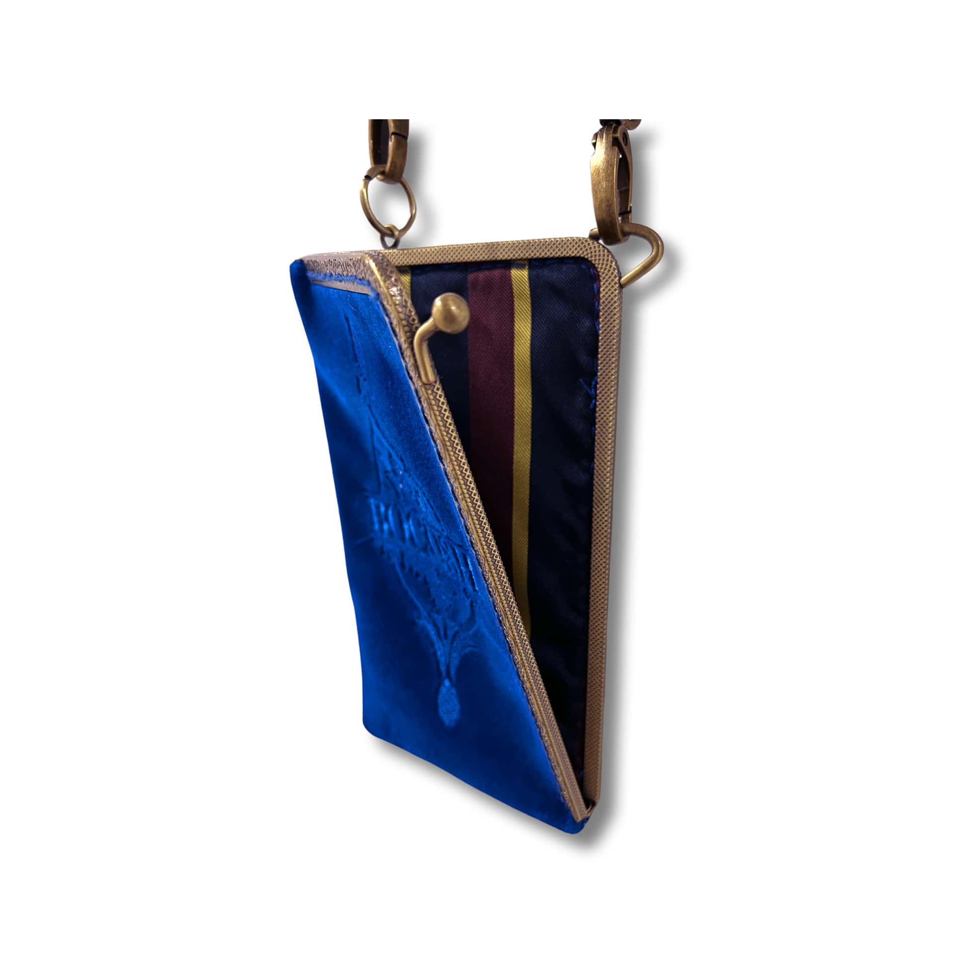 Kleine Tasche mit Zierrahmen und Stickerei, ideal als zusätzliche Handytasche, aus Baumwollsamt gefertigt. (110 x 190 mm)