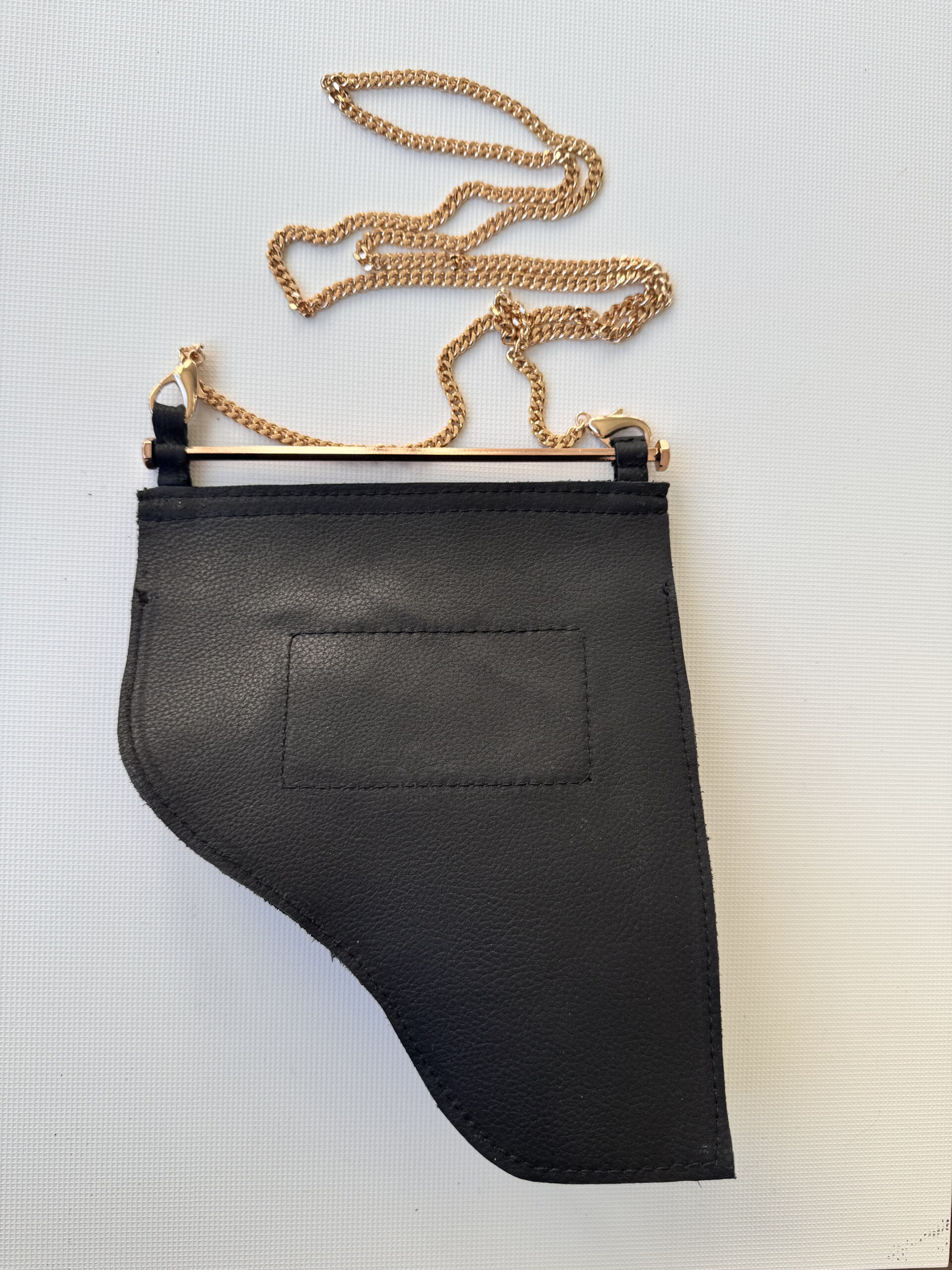 Handtasche aus echtem Leder, tragbar über Schulter oder Gürtel, originelles Design, inspiriert von Pistolenholstern.