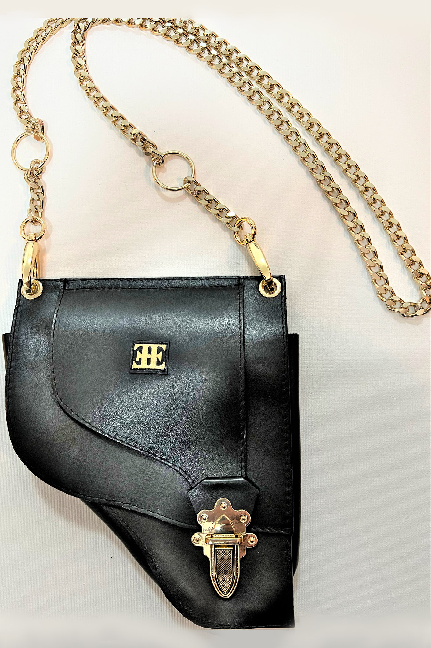 Genuine leather holster-style bag, can be worn on the shoulder or belt, unique design inspired by pistol holsters.